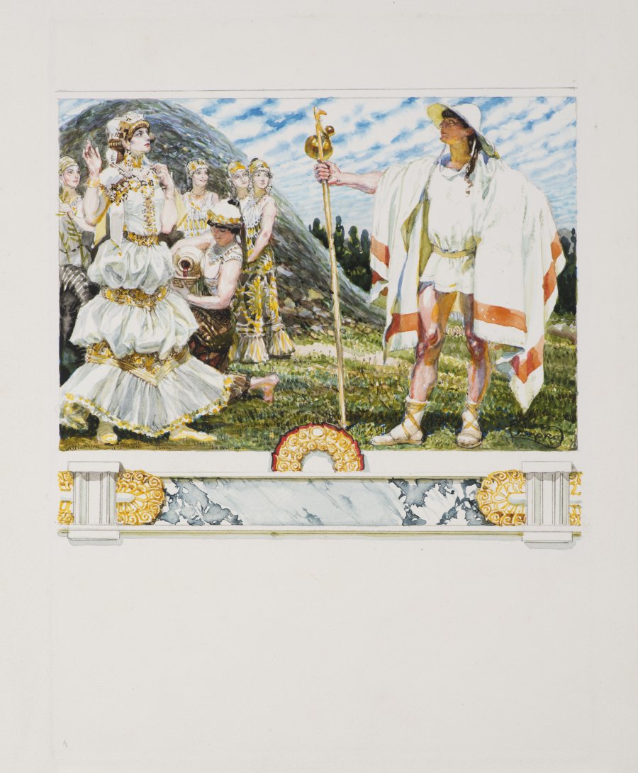Les Precedents: Oreste is from the series of illustrations Les Erinnyes – Tragedie Antique de Leconte de Lisle. Watercolor, gouache on paper, signed "Kupka" on bottom right.