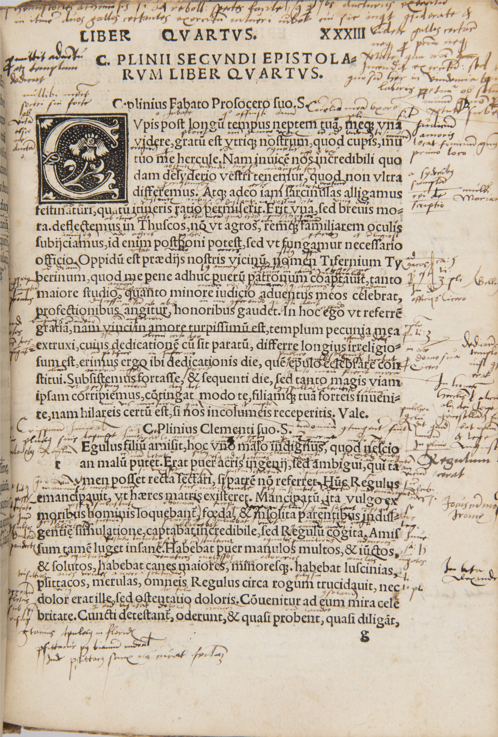 Contains: Juvenalis. Satyra prima (- sextadecima). Köln et al., H. Quentell, 1510, 75 no. leaves. Cicero, M. T. Rhetoricorum libri quatuor ad herennium. De inventione libri duo, 111 roman numeral. leaves. Cicero, M. T. Tusculanarum quaestionum libri quinq (ue). Strasbourg, 83 Roman numerals. leaves. Plinius Secundus, G. Epistolarum libri decem, in quibus multae habentur epistolae non ante impressae, 116 romsky cis. leaves.