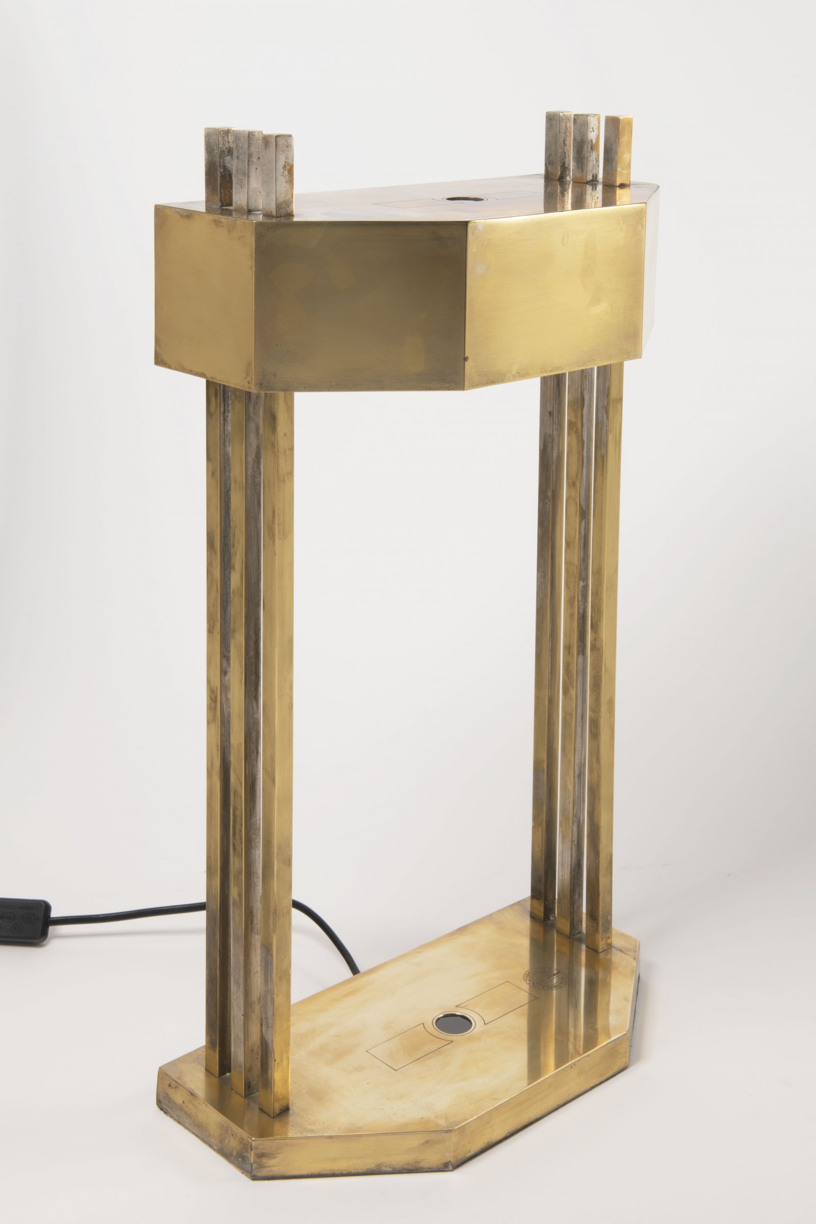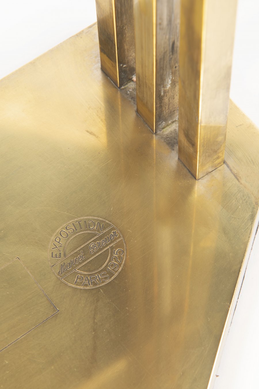 Rare Art Deco lamp with cubic shapes by the world representative of modernism, architect and designer, member of Bauhaus, Marcel Breuer, designed for the Expo exhibition in Paris 1925. Bottom and top with inset round black glass. Electrified, marked with an embossed stamp.