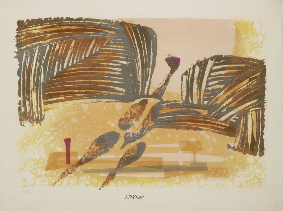 Oldřich Jelínek's prints often feature dynamic themes - machines, technology, circus, dance or music. His work is quite balanced and eye-pleasing with a sense of humour. Numbered 2/4.