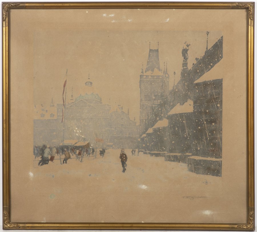 František Šimon Tavík was a prominent graphic artist, painter, wood engraver and later taught at the Academy of Fine Arts. He was a member of the S.V.U. Mánes and co-founder of the Hollar association. He travelled extensively, and in 1926-1927 he even made a trip around the world.