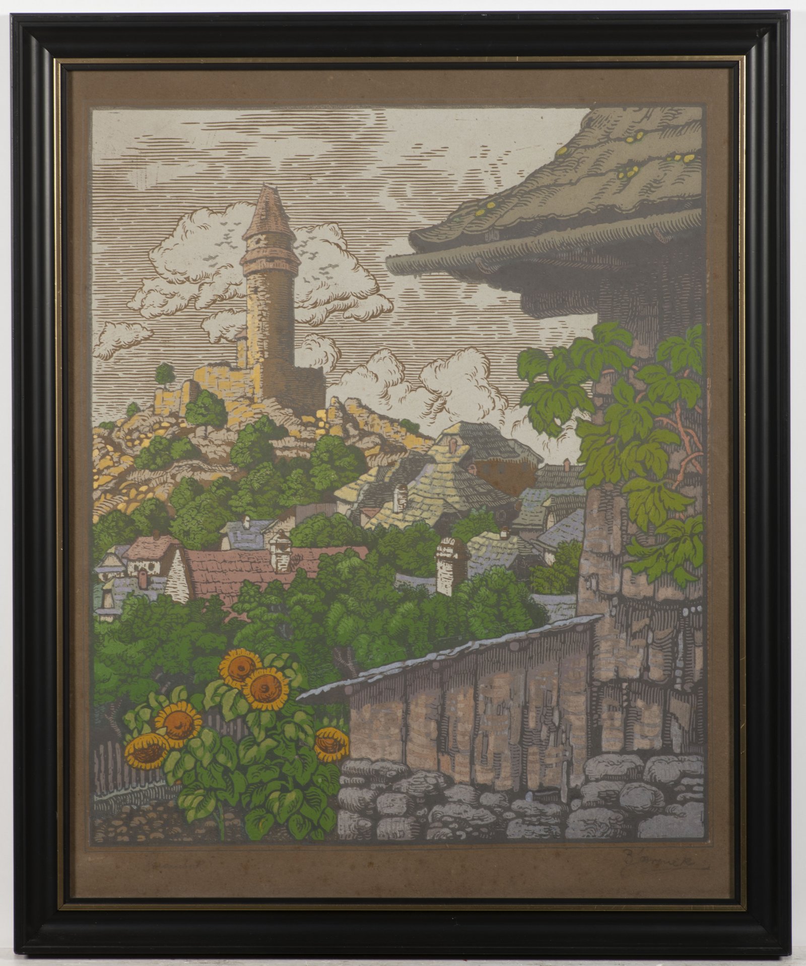 Bohumír Jaroněk originally trained as a carver. This relationship of his to wood was also reflected in his impressive and very detailed woodcuts, which he used especially for landscapes in Wallachia. He also made trips to the Mediterranean during the winter and early spring, where he created oils and watercolours.
