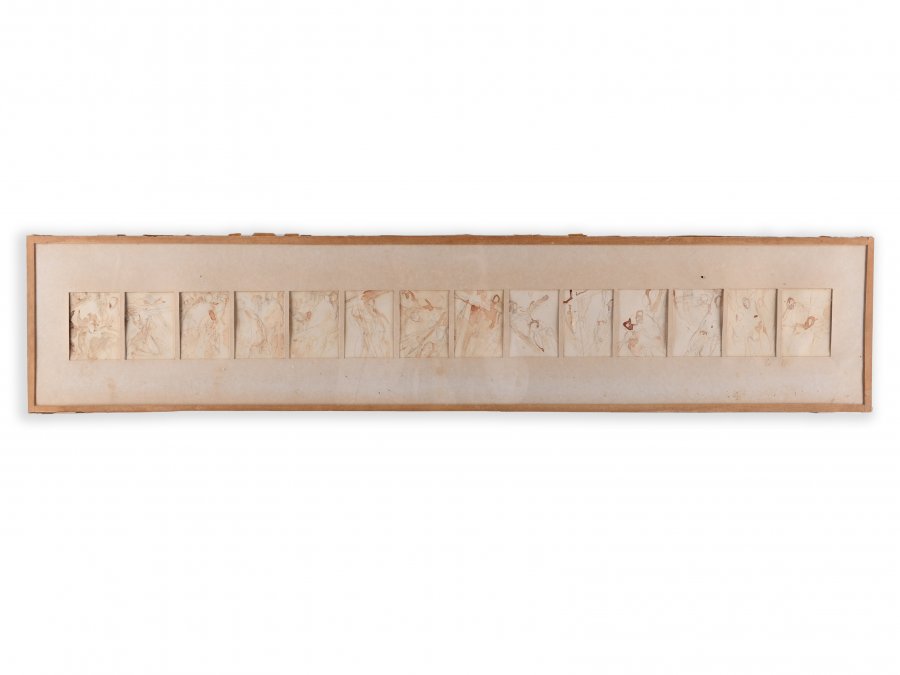 A set of studies of individual phases of the crucifixion in the form of a "storyboard" in Indian ink on paper.