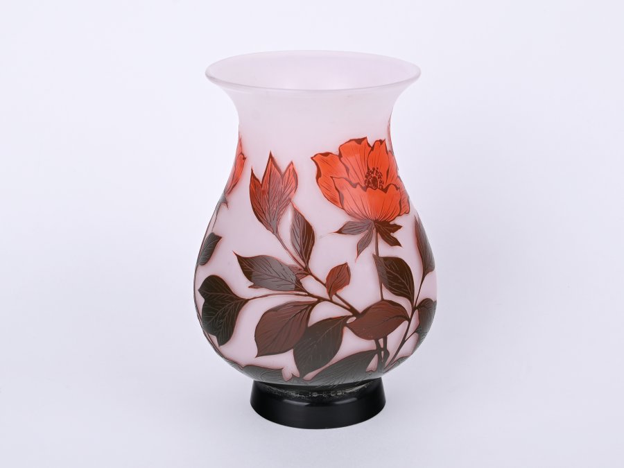 Loetz vase with a rose motif, layered glass decorated with etching.