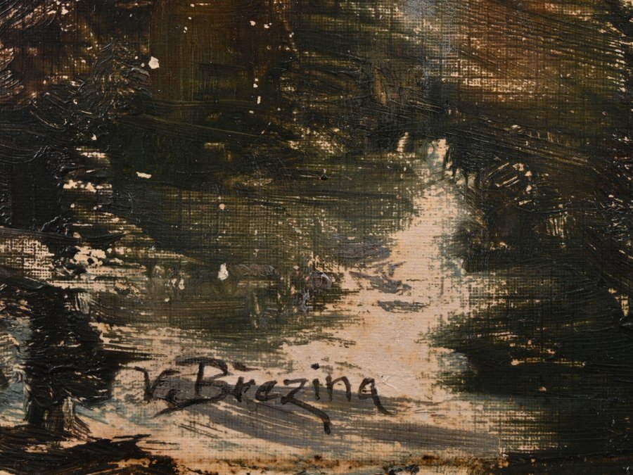Václav Březina je jedním z nejvýznamnějších žáků Julia Mařáka, se kterým se seznámil již při studiu ve Vídni u profesora Kautského. V roce 1887, kdy Mařák začal vyučovat krajinomalbu na pražské Akademii, se k němu zapsal i Březina a studoval zde až do roku 1892. Silné ovlivnění profesorovým vzorem je patrné jak ve výběru témat, tak v rukopise. Častá jsou romantická lesní zátiší, pohledy na říčky, vřesoviště a louky, které se proměňují v závislosti na ročním období a dopadajícím světle.