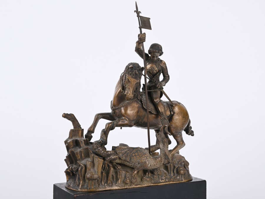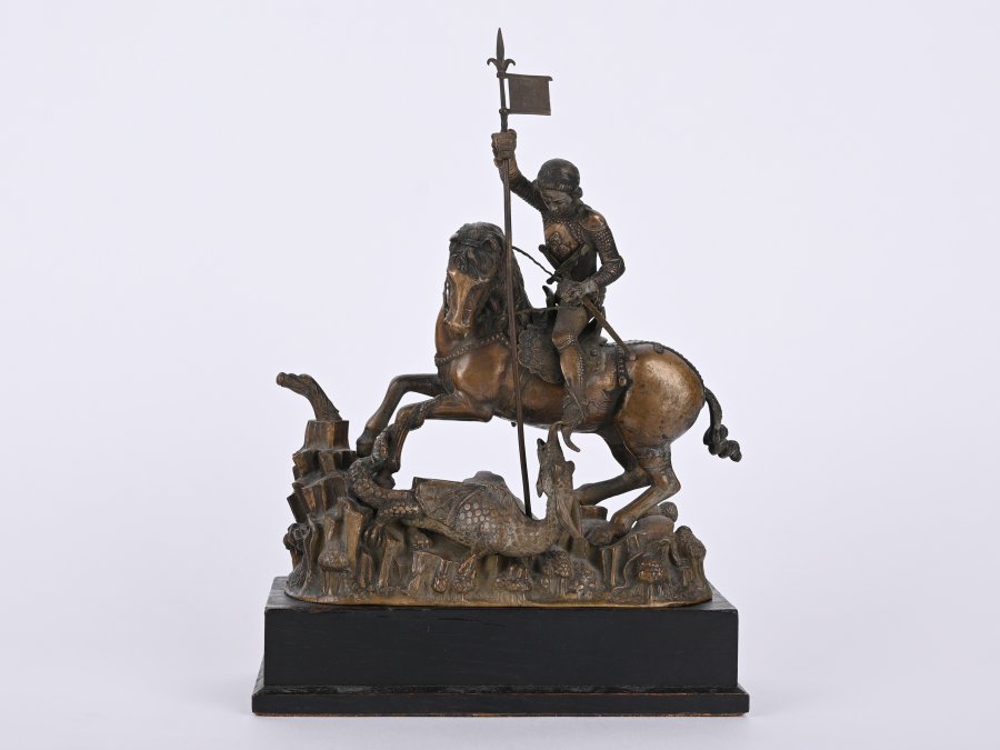 Zmenšená kopie jezdecké sochy sv. Jiří na třetím nádvoří Pražského hradu.