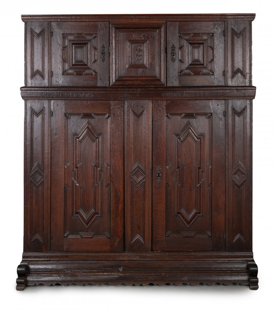Baroque cabinet dated 1776 with rich geometric carving. Good state of preservation.