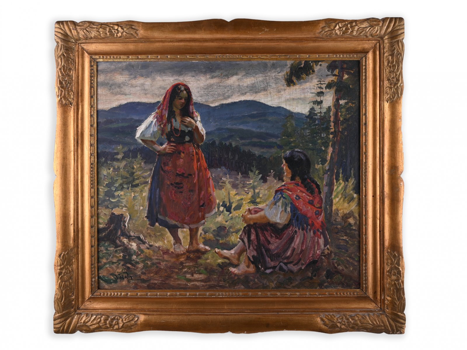 Jose Fiala studied under Professor Hynais and was an outstanding landscape painter and figuralist. He devoted himself a lot to village motifs, where people in traditional costumes or simple clothes are set in impressive nature or perform normal daily activities near village houses.
