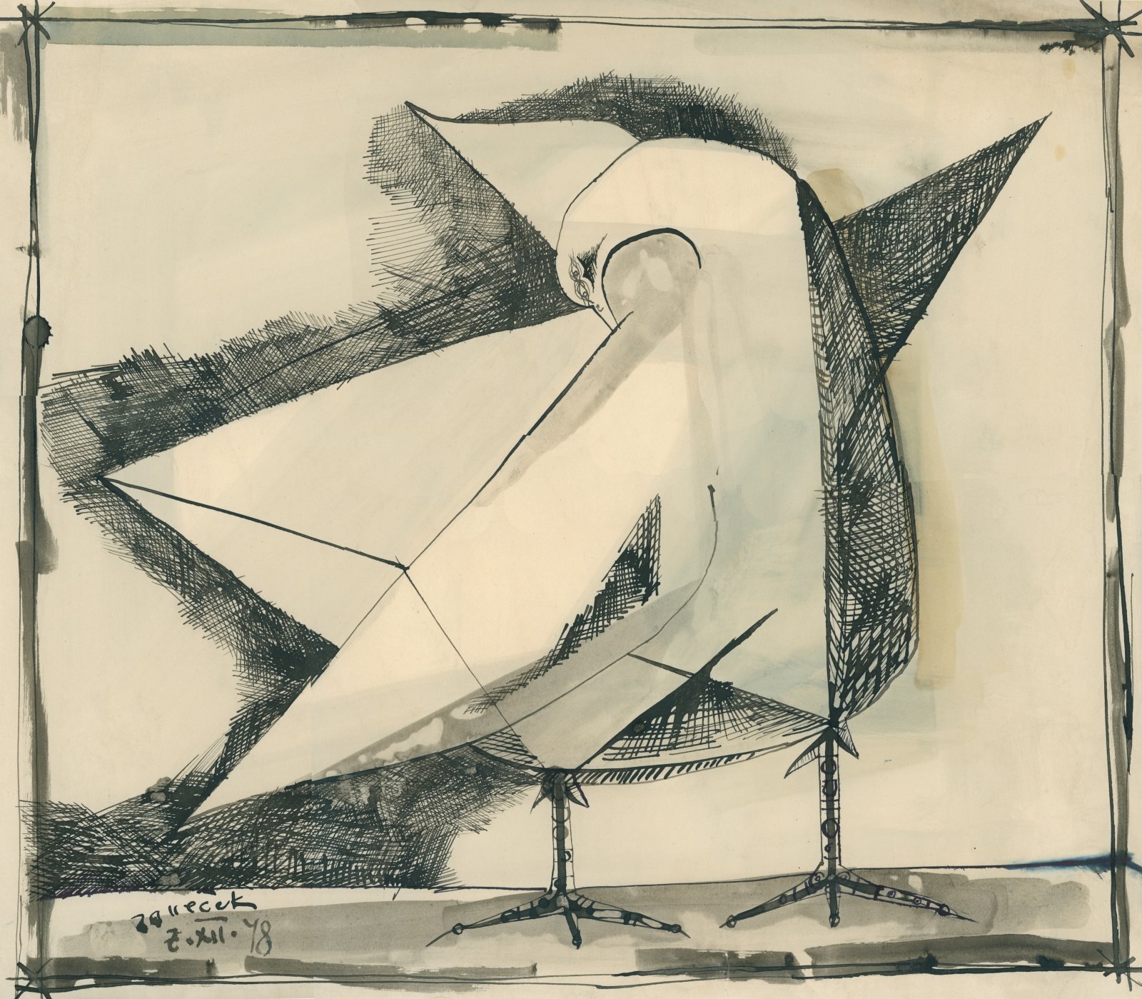 The exhibition Ota Janeček from the Studio presents the Czech artist in lesser-known contexts. The core of the exhibition consists of works on paper from the artist's early career, discovered in his Prague studio. These are complemented by sculptures, paintings, ceramics, and textile designs. The exhibition shows the diversity of the artist's creative forms, who focused on only a few themes throughout his artistic life. The exhibition will run from September 19 to October 31, 2025.