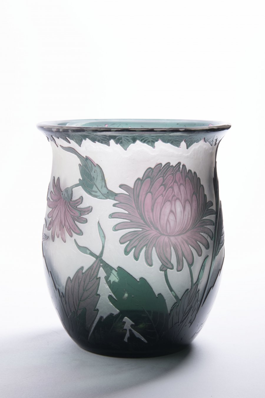 Vase from the production of the glassworks Loetz Witwe from Klášterský mlýn in blue-violet shade, blown into a mould, with floral decoration.